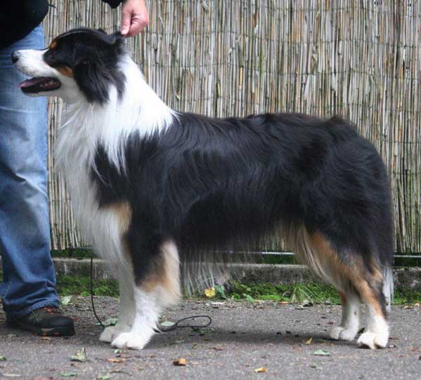 Buddy ist ein toller Rüde und der absolute Liebling von Nadina und Jürgen. Buddy ist ein problemloser Rüde, er ist aufgeschlossen, liebt die Menschen, ist im Umgang mit anderen Hunden absolut souverän und problemlos und er ist wie ein Aussie sein soll ein sehr agiler Rüde. Er hat die Zuchtzulassung im VDH mit Vorzüglich erhalten. Insgesamt ist er ein morater eleganter Rüde mit sehr schönem Kopf und ausgezeichneter Bewegung.